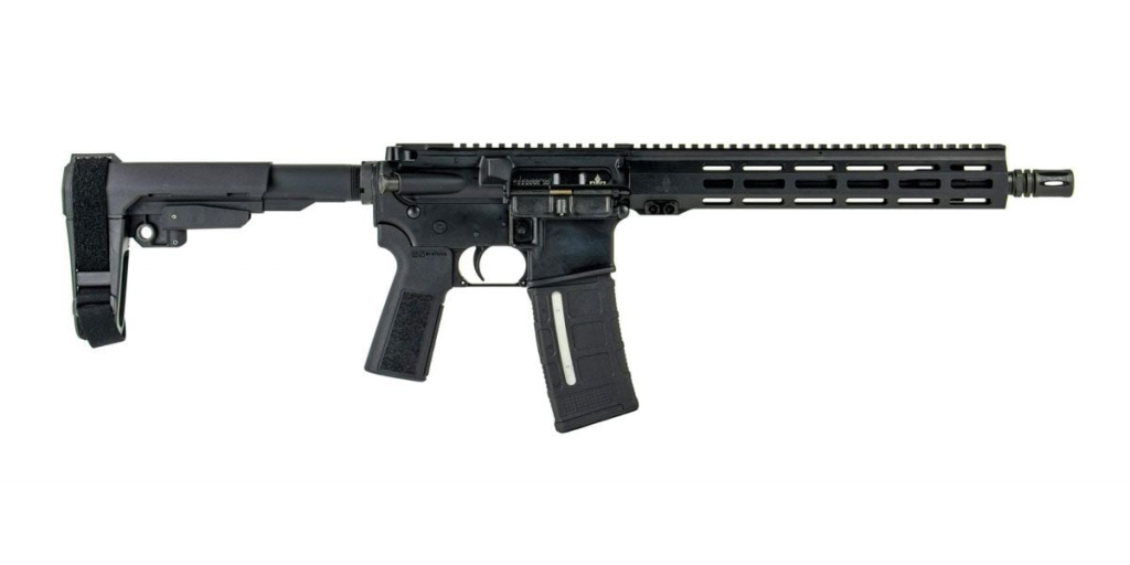 What stands out: Mid-length gas in a 12.5″, heavy barrel, premium brace and grip included, American-made